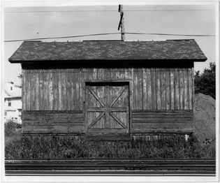 Given a new stone foundation when it was reproduced in the Square, the freight station formerly stood between the Erie-Lackawanna train tracks at Murray Hill